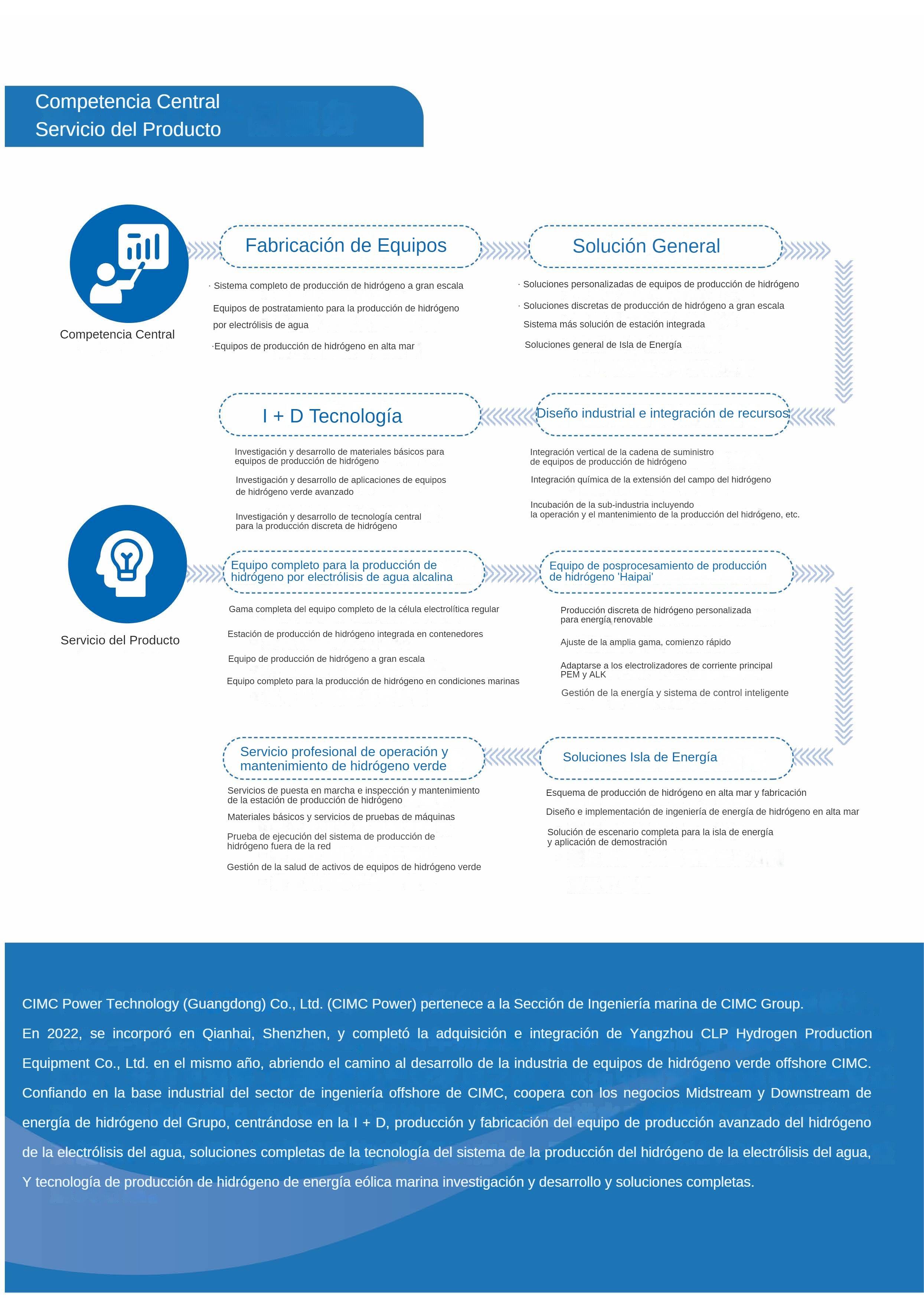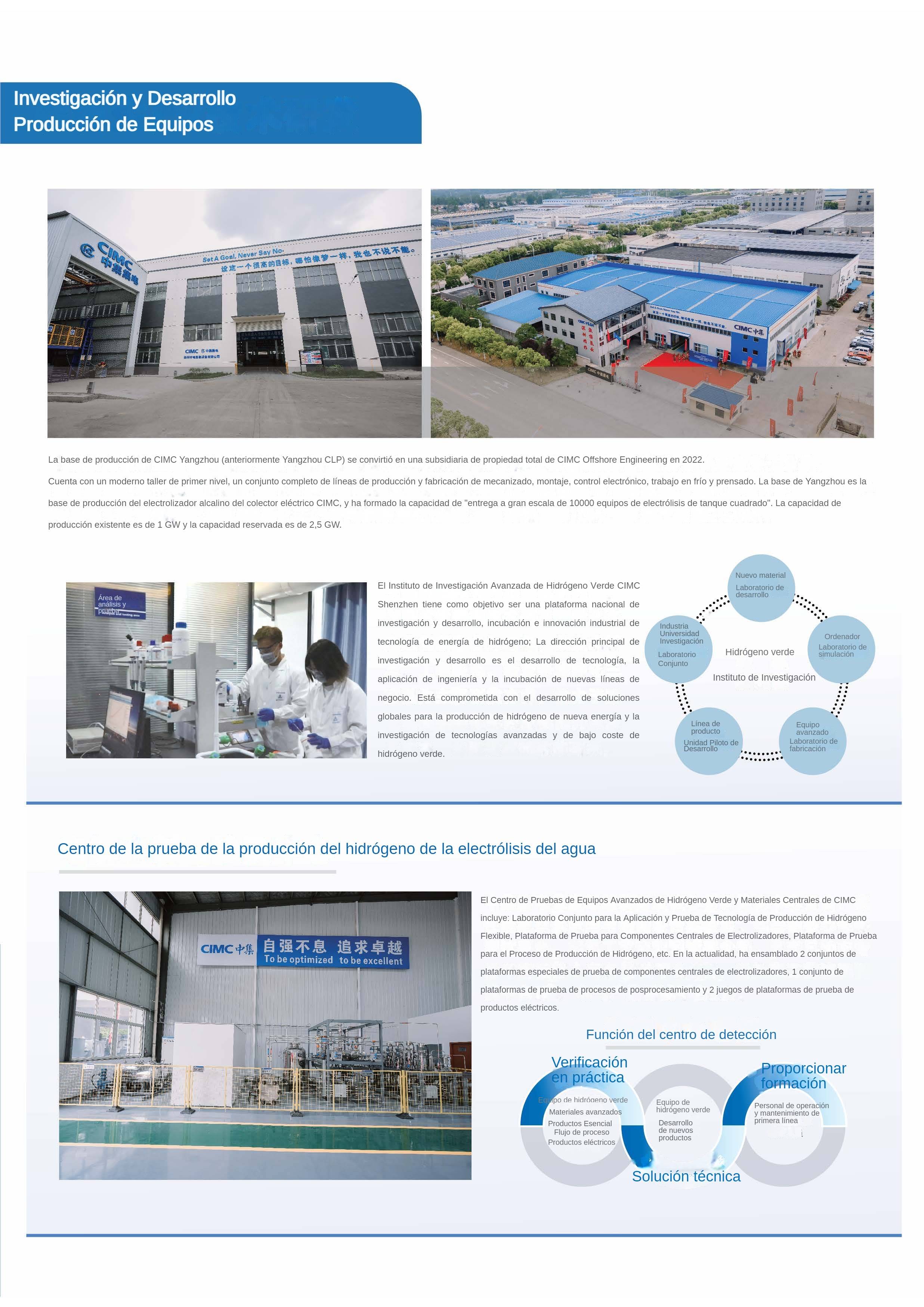CIMC Power Technology(Guangdong)Co., Ltd (en lo sucesivo, CIMC), que pertenece al segmento de ingeniería offshore de CIMC, se constituyó en Qianhai, Shenzhen en 2022, centrándose en la I+D y la fabricación de tecnología avanzada y dispositivos de producción de hidrógeno verde. Con la visión de ser el «proveedor líder mundial de equipos y soluciones de hidrógeno verde» y apoyándose en la base industrial de CIMC Offshore Engineering, CIMC creará sinergias con los negocios midstream y downstream de energía de hidrógeno del Grupo, centrándose en la investigación, el desarrollo, la producción y la fabricación de equipos avanzados de producción de hidrógeno por electrólisis de agua; soluciones tecnológicas de sistemas completos para la producción de hidrógeno por electrólisis de agua; y la investigación y el desarrollo de tecnología de producción de hidrógeno eólico marino y soluciones completas. y soluciones completas. Con sede en Shenzhen, CIMC ha establecido el Instituto de Investigación Avanzada de Hidrógeno de Shenzhen, la base de producción de Yangzhou y la plataforma de apoyo técnico en alta mar de Yantai. CIMC Offshore Engineering - CIMC Raffles Offshore Engineering Co., Ltd. es una filial propiedad al 100% de CIMC, que se ha comprometido a convertirse en un proveedor líder mundial de servicios integrales en alta mar. CIMC Raffles Offshore Engineering es una filial propiedad al 100% del Grupo CIMC, que se ha comprometido a convertirse en un proveedor líder mundial de servicios integrales en alta mar, proporcionando a los clientes equipos, soluciones y servicios en alta mar seguros, fiables y competitivos.