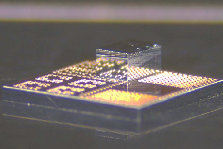Utilizan microscopios avanzados para monitorear la interfaz y, cuando el pequeño chip está en la posición correcta, aplican calor y presión para unir el transistor de GaN al chip.