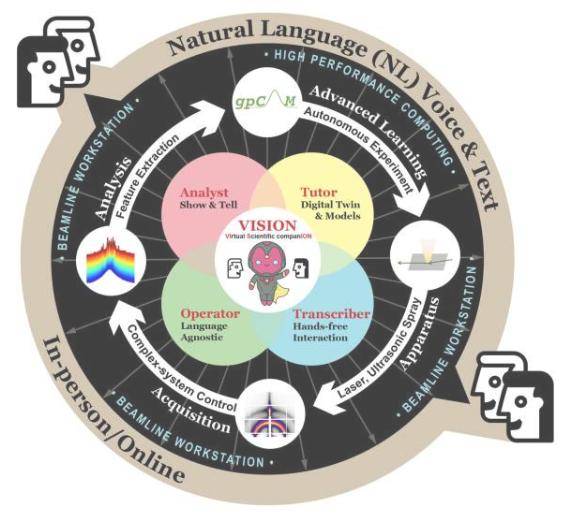Lo destacado de VISION es su uso de modelos de lenguaje grandes (LLM), que pueden crear texto basado en lenguaje humano natural, generar decisiones sobre operaciones y código de computadora para impulsar los instrumentos. Su estructura interna está organizada en múltiples "módulos cognitivos", cada uno conteniendo un LLM que procesa tareas específicas; estos módulos se pueden combinar en un asistente poderoso que trabaja de manera transparente para los científicos.