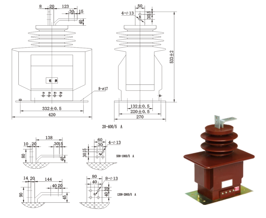 Este tipo de transformador de corriente es una estructura de pilar completamente cerrada con fundición de resina epoxi, que es adecuada para la medición de corriente eléctrica, energía eléctrica y la protección de relés y equipos con un voltaje nominal de 50 Hz y un voltaje nominal de 35 kV e inferior.