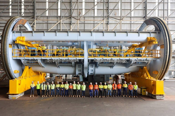 Este proyecto de actualización y transformación a gran escala demuestra plenamente la enorme escala y precisión necesarias para mantener las operaciones de exportación de la compañía en plena capacidad. El núcleo del proyecto es una de las grúas más potentes del hemisferio sur, la Tadano CC88, apodada Rubino, en honor al difunto comerciante de Australia Occidental y presidente del consejo de Monadelphous durante mucho tiempo, John Rubino. Esta grúa, contratada por Monadelphous, tiene una capacidad de elevación de hasta 1.600 toneladas, equivalente a poder levantar tres aviones Boeing 747, y utiliza 1.155 toneladas de contrapeso para manejar tareas pesadas.